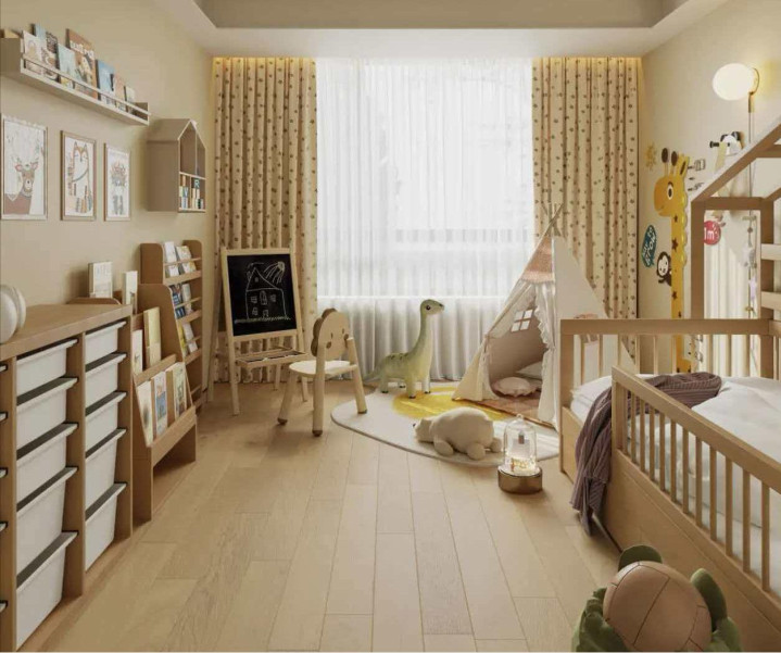 成长需迭代: 所以需要预留可变的空间。今天是爬行垫,明天就是学习桌;充足的收纳空间,来容纳他无穷无尽的玩具、书籍;如果还能有一面随意涂画的黑板墙,会比任何奢华装饰都更受孩子欢迎。