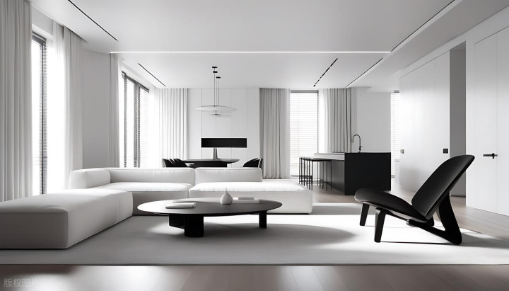 基底用“大白”: 墙面、地面、天花板,用浅色、中性色打底(米白、浅灰、奶油色)。这是你家的基础画布,保持干净清爽即可。